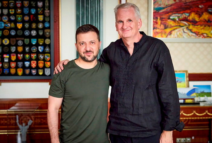 Timothy Snyder with Ukrainian President Volodymyr Zelensky. [Source: static.lpnt.fr]